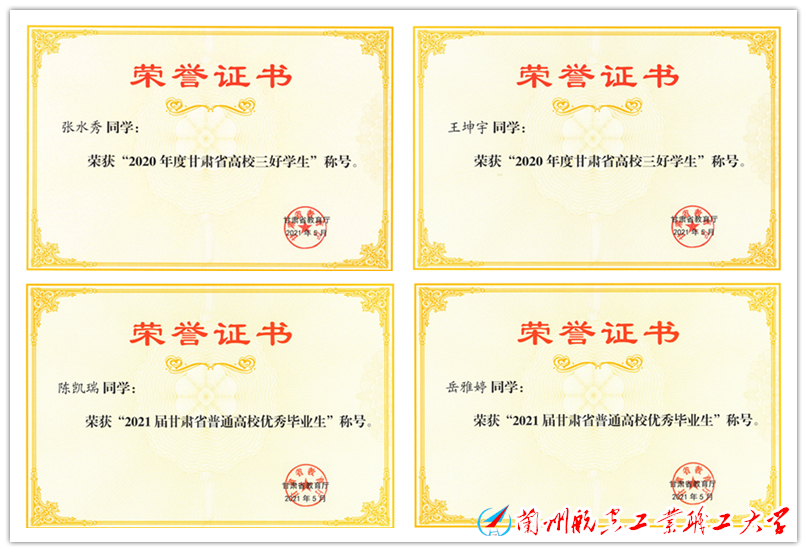 日前,学校举行仪式,为获得2020年度甘肃省高校三好学生和2021届甘肃省高校优秀毕业生的人员颁发荣誉证书。