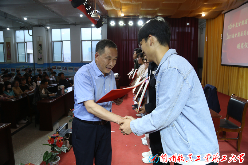 颁奖仪式上,副校长王江宣读了甘肃省教育厅《关于公布2020年度甘肃省高校三好学生的通知》和《关于公布2021届甘肃省高校优秀毕业生的通知》。校长席尚信为获奖人员颁发荣誉证书,并希望他们继续努力、珍惜荣誉,谦虚谨慎、戒骄戒躁,在今后的工作和学习中再接再厉,锐意进取;希望广大同学以他们为榜样,坚定理想信念,志存高远、脚踏实地,勤学修德、立志成才。
