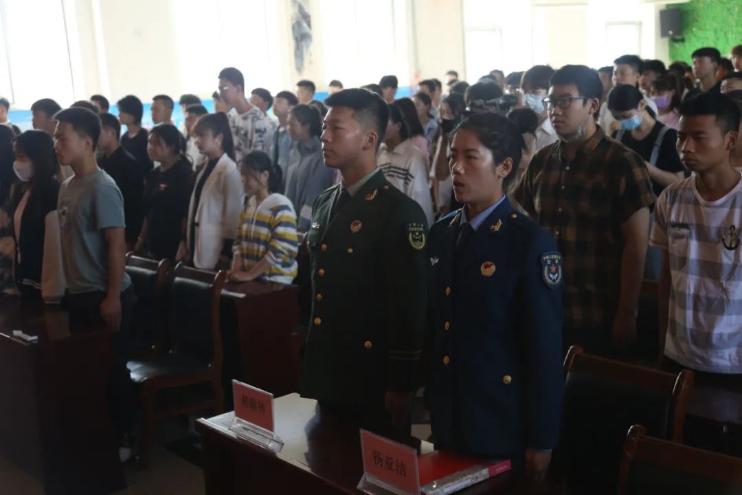 6月3日上午,学校举行2021年下半年大学生征兵工作启动仪式暨征兵宣讲会。安宁区人民武装部部长杨云江出席大会,学校副校长王江出席并讲话,兰州战役纪念馆讲解员王婉茹在会上作了专题党史教育,退役士兵代表郝翰林、杨亚洁、学校2021年预征学生代表2020级空中乘务专业郭兴分别发言。大会由学校武装部部长孙俊男主持,近四百名学生参会了大会。大会在雄壮的国歌声中拉开帷幕。