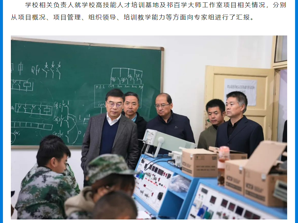 学校迎接国家级高技能人才培训基地及祁百学大师工作室项目考核评估