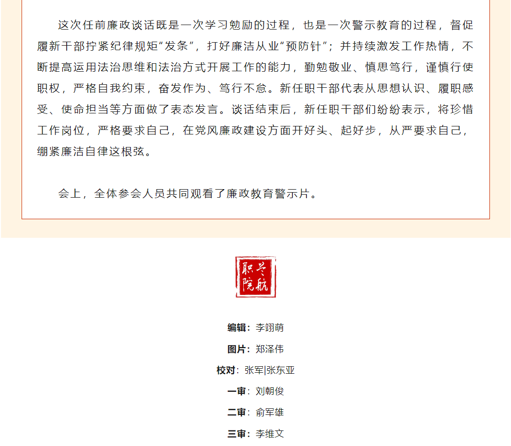 把好“起步关” 绷紧“廉洁弦” | 学院组织新任职干部廉政集体谈话会