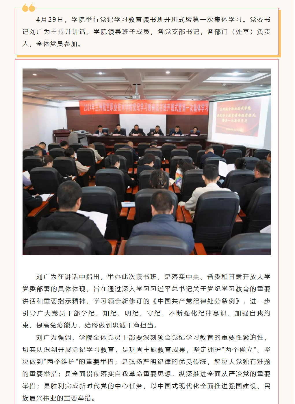 学纪 知纪 明纪 守纪 | 学院举行党纪学习教育读书班开班式暨第一次集体学习