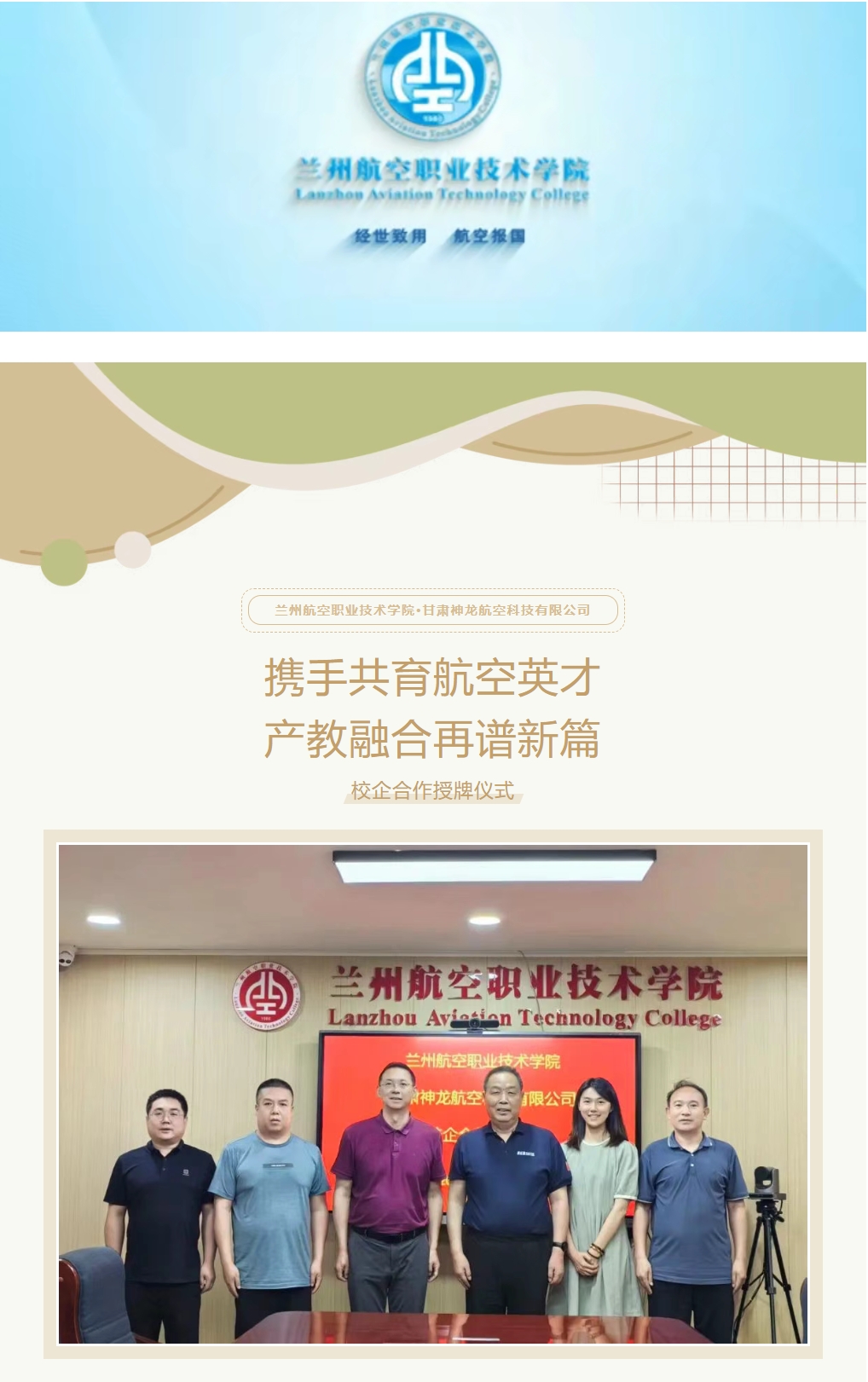 beat365中国唯一官网与甘肃神龙航空科技举行校企合作授牌仪式