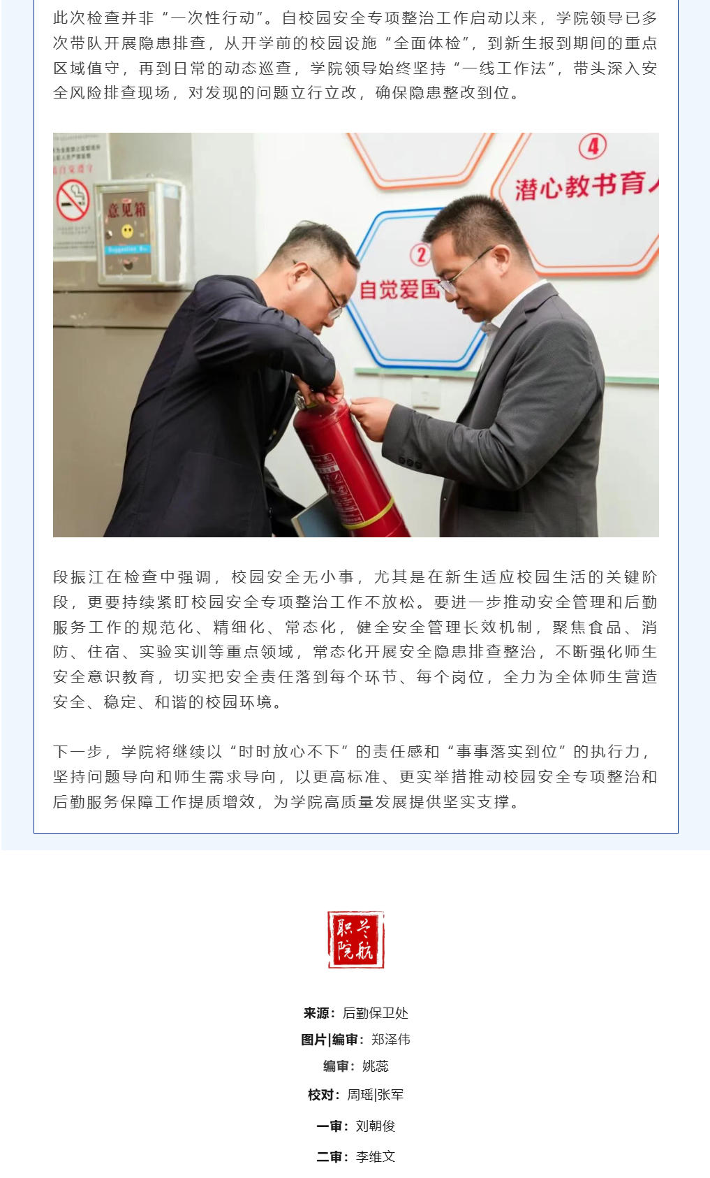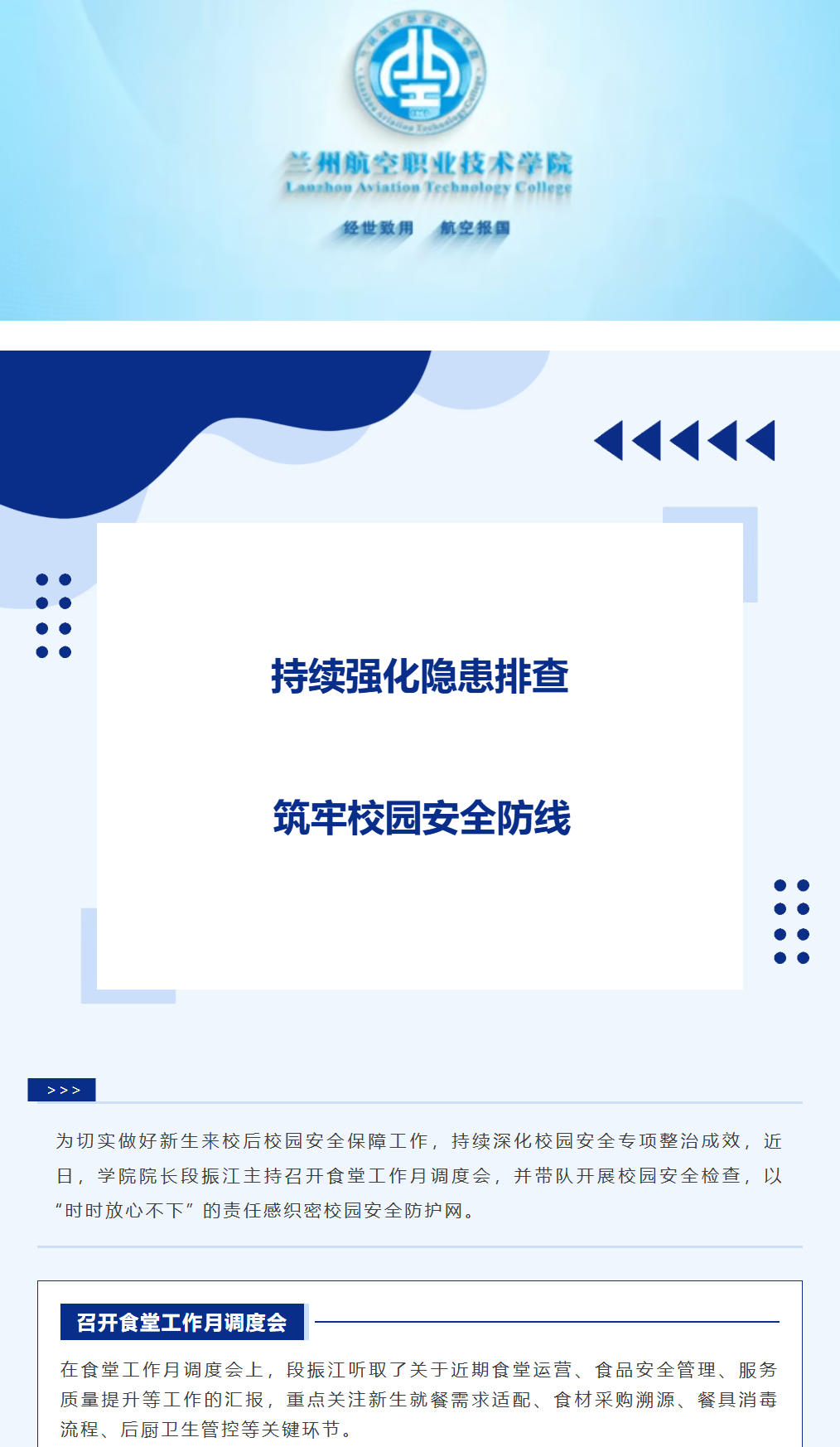 学院召开食堂工作月调度会并开展校园安全检查
