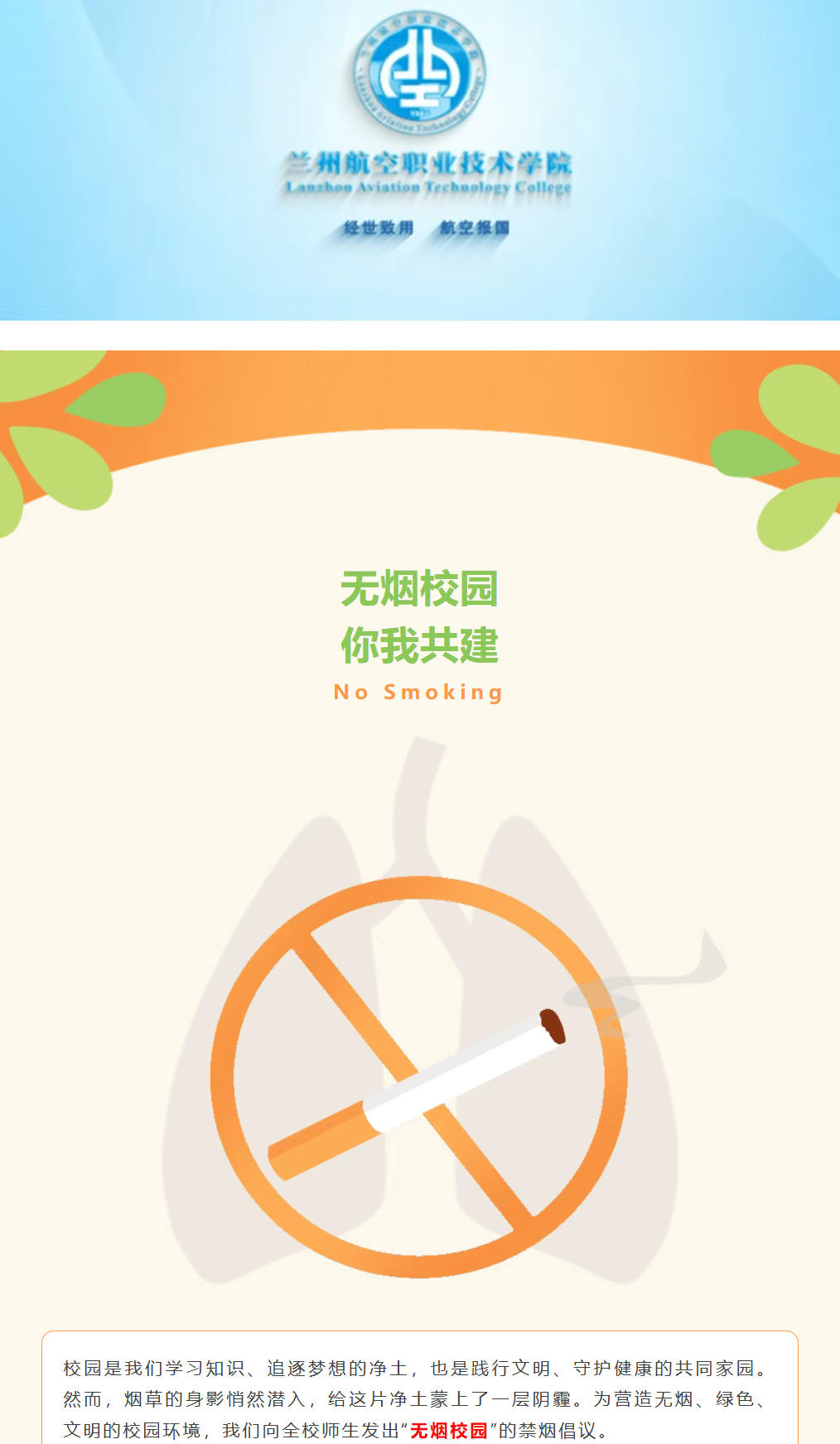 无烟校园 你我共建|致全体师生的无烟校园行动倡议