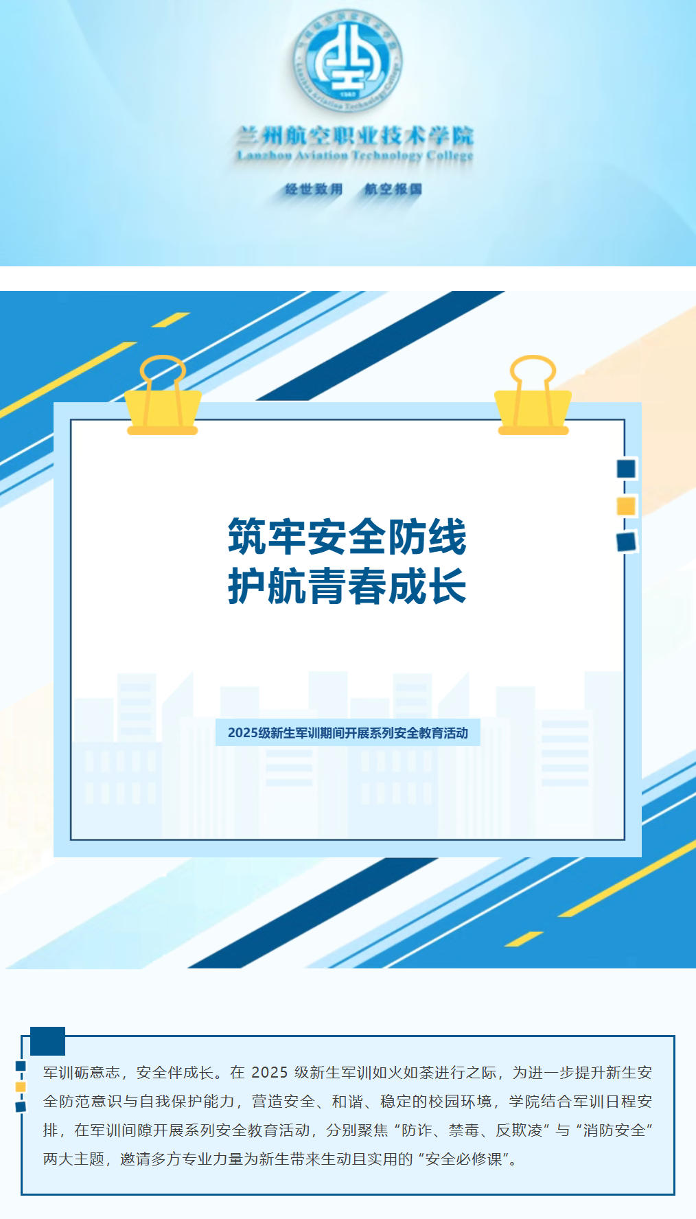筑牢安全防线 护航青春成长|学院于2025级新生军训期间开展系列安全教育活动
