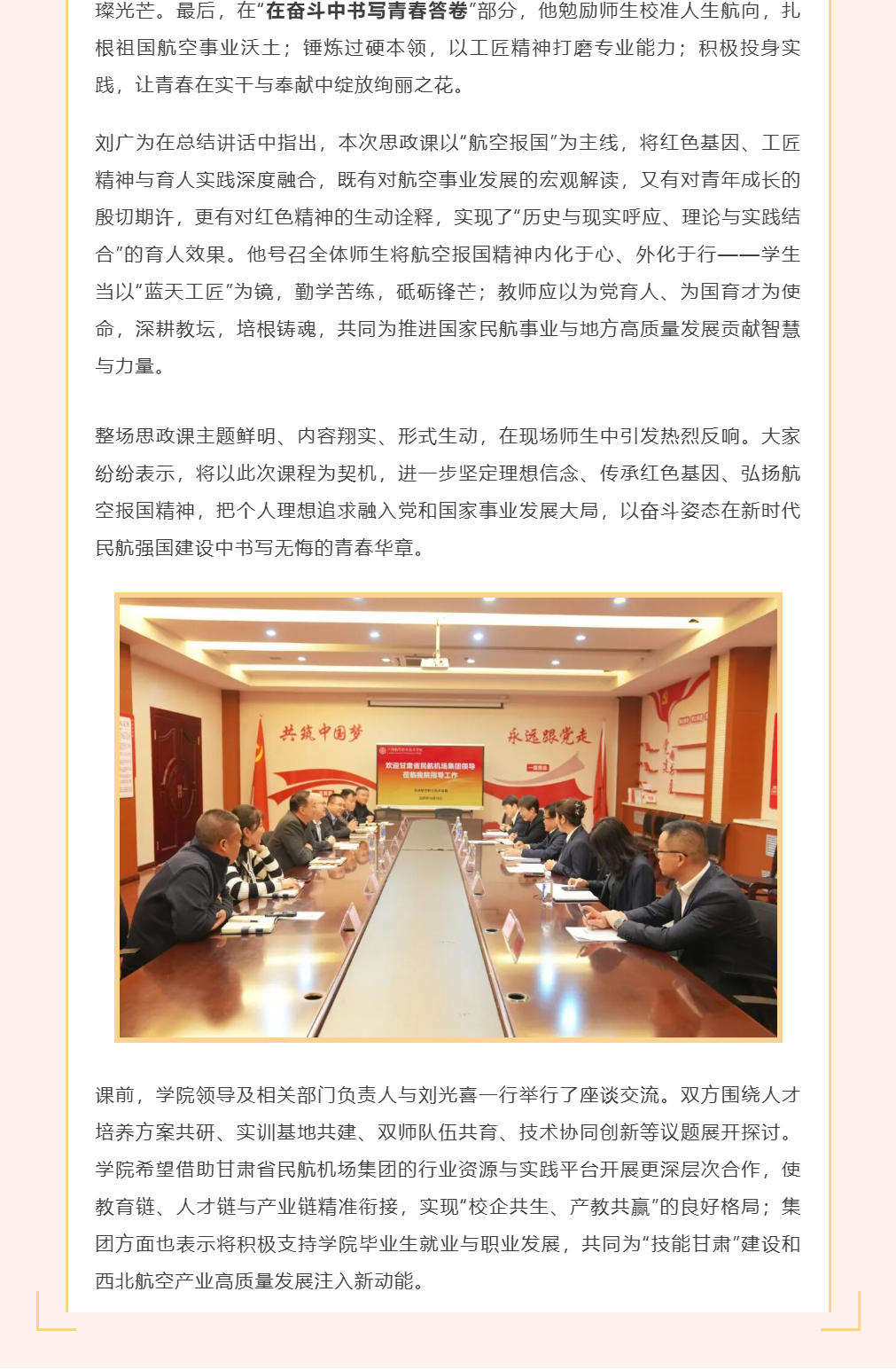 甘肃省民航机场集团党委副书记、工会主席刘光喜来校讲授专题思政课