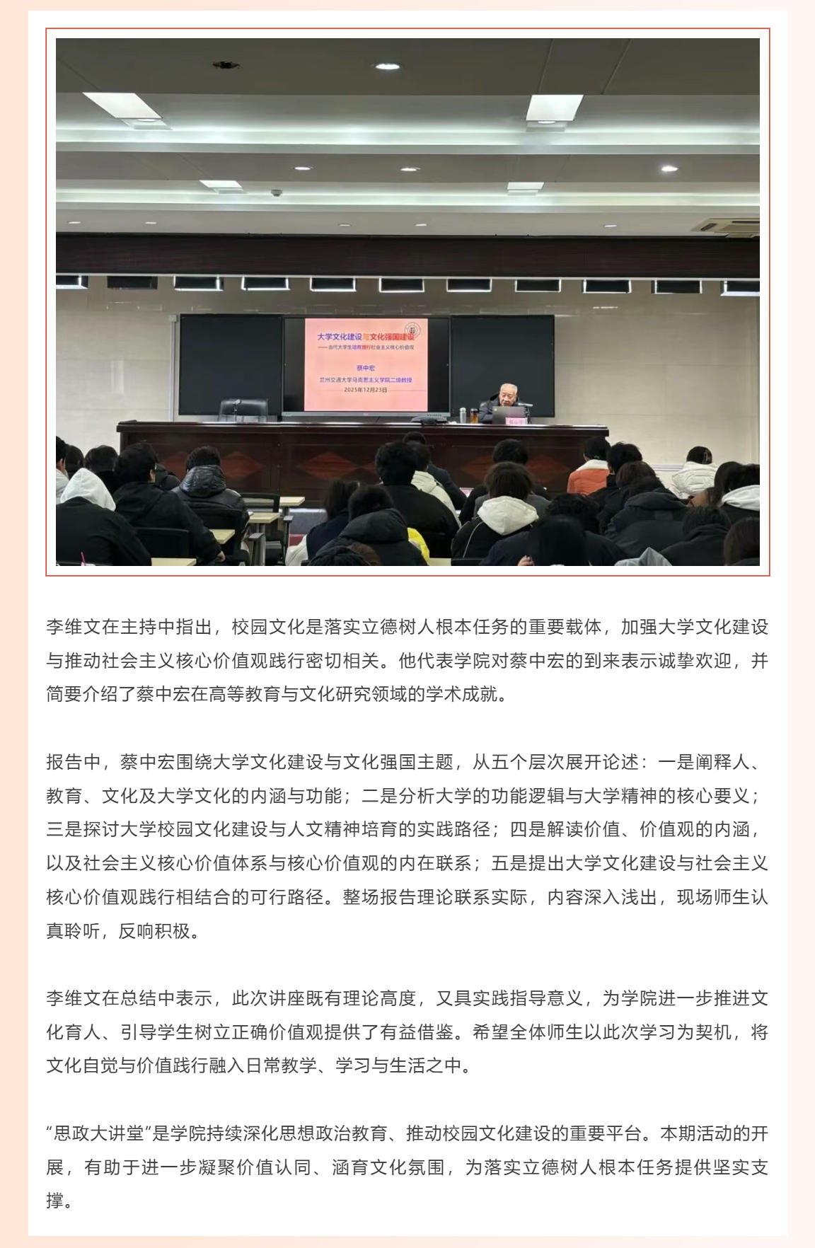 深耕大学文化建设 引领学生价值践行|学院举办“思政大讲堂”第五期活动