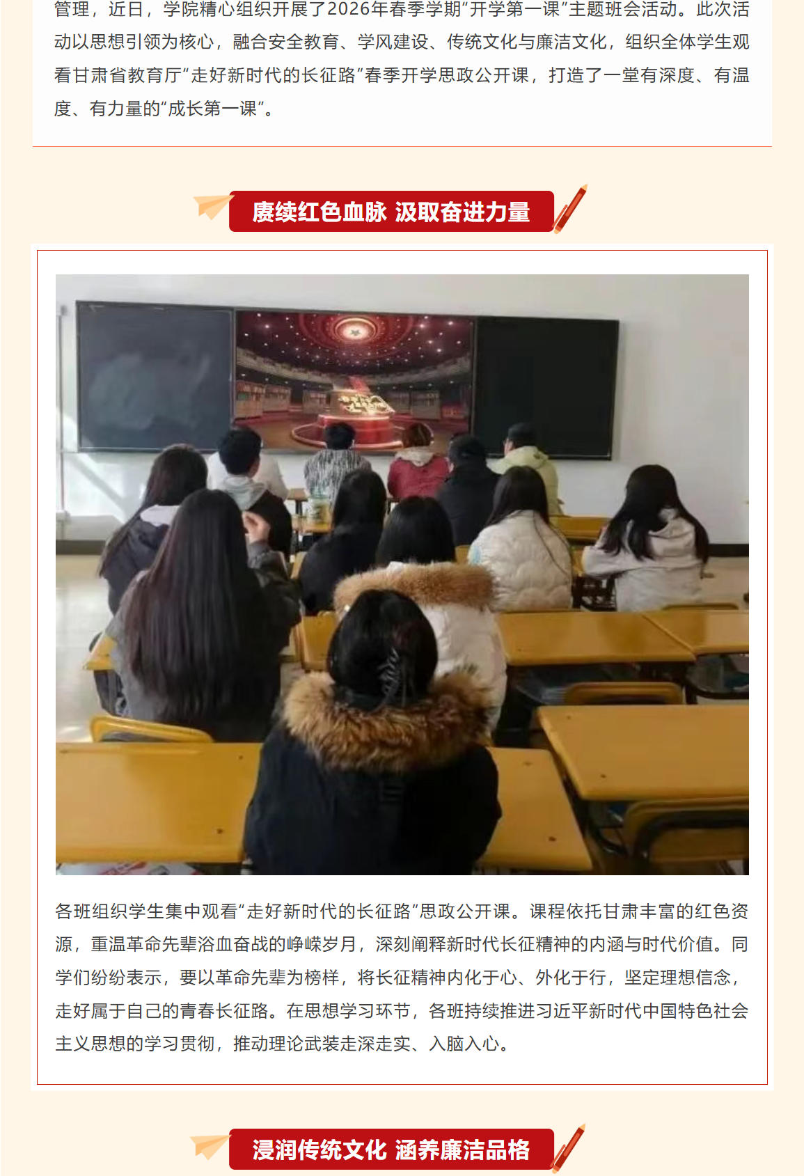 学院开展2026年春季学期“开学第一课”主题班会活动