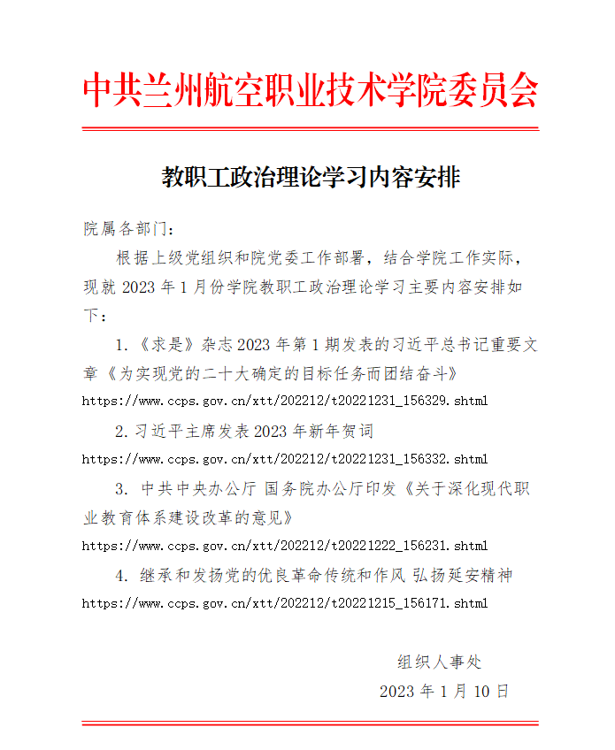 教职工政治理论学习内容安排