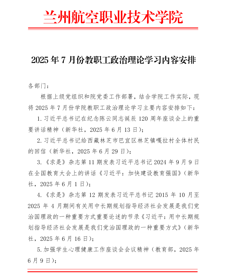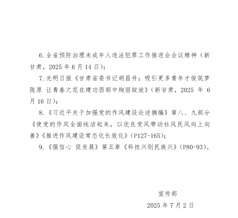 2025年7月份教职工政治理论学习内容安排