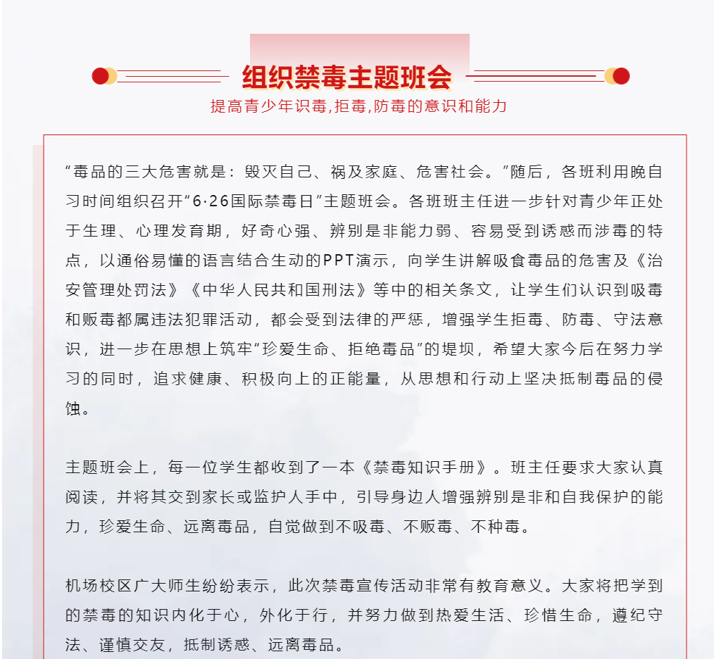 识毒防毒零距离 护航青春不“毒”行 | 机场校区开展禁毒宣传教育活动