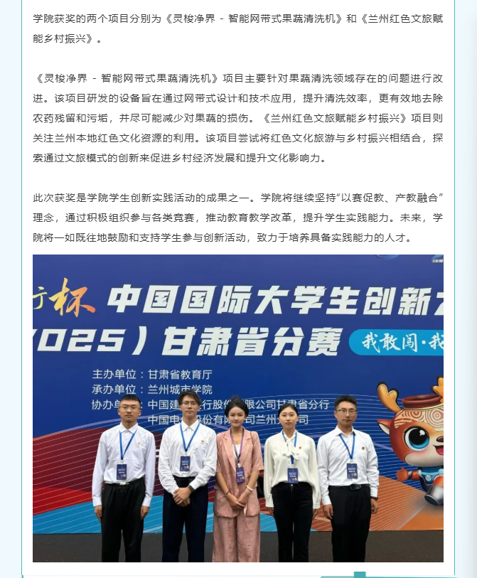 学院学子在中国国际大学生创新大赛(2025)甘肃省分赛中荣获两项铜奖